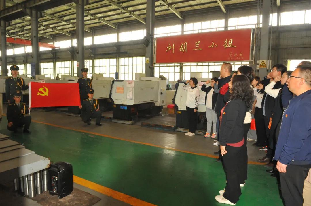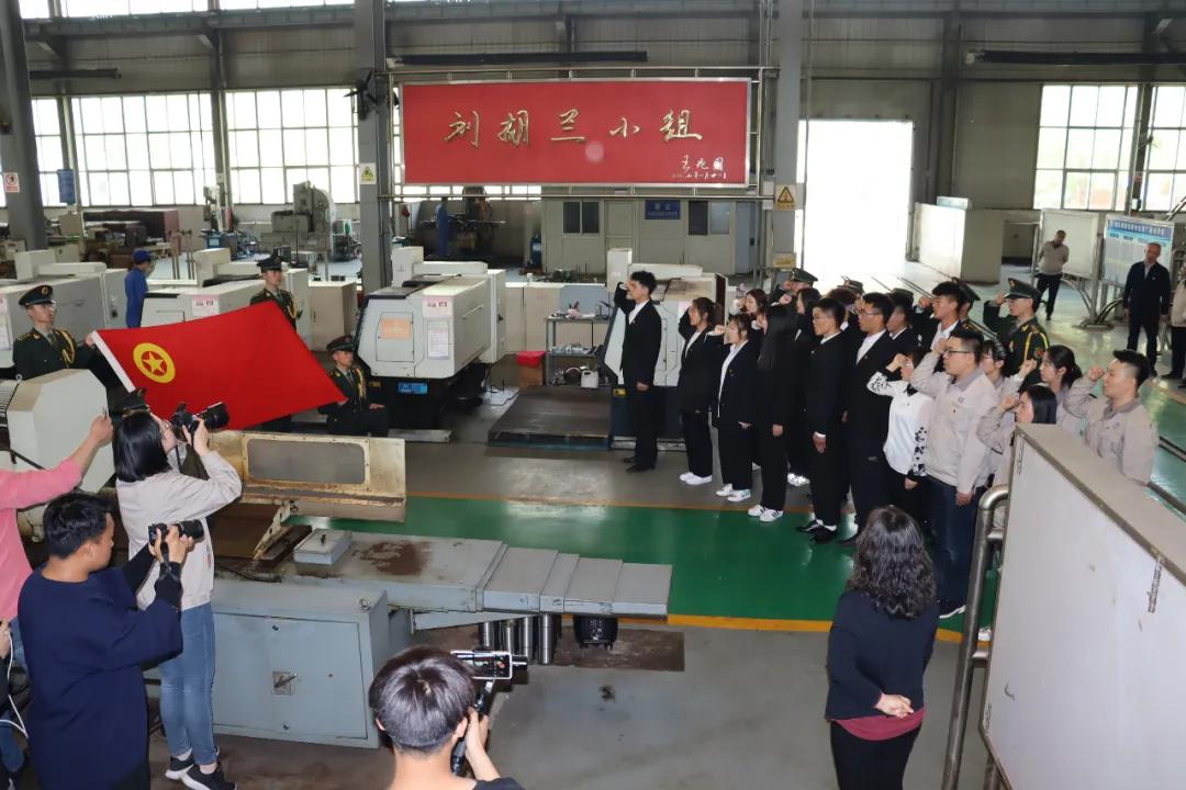 在“刘胡兰小组”的牌匾下,山西青年职业学院的党员代表和我公司党员代表在党旗下庄严宣誓,重温入党誓词。学院团员代表和公司团委的青年骨干共同在团旗下宣誓,重温入团誓词。在庄严的党旗和团旗下,全体人员高唱《没有共产党就没有新中国》这首经典红色歌曲。