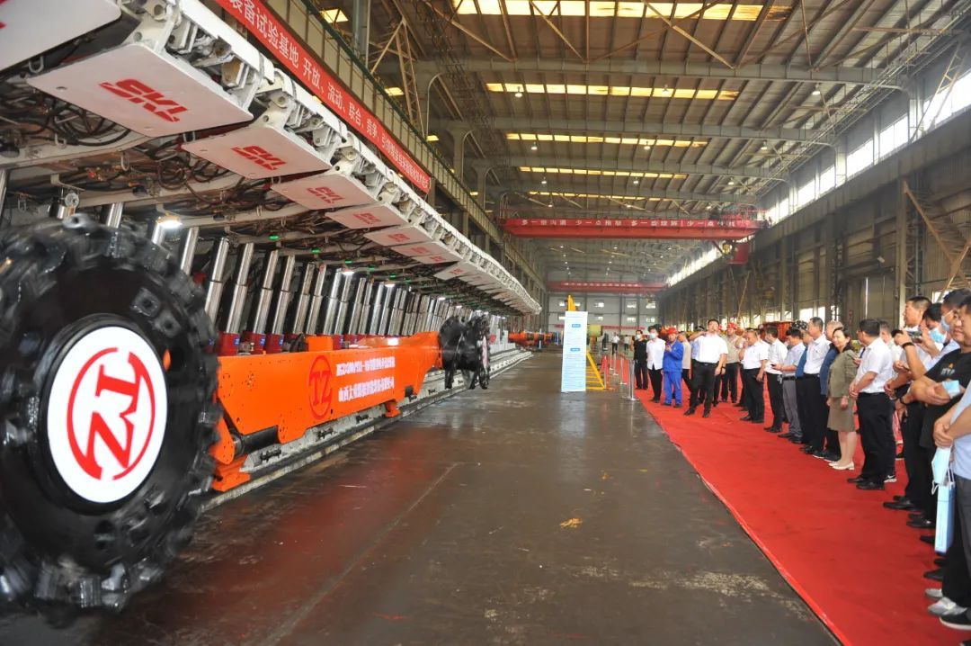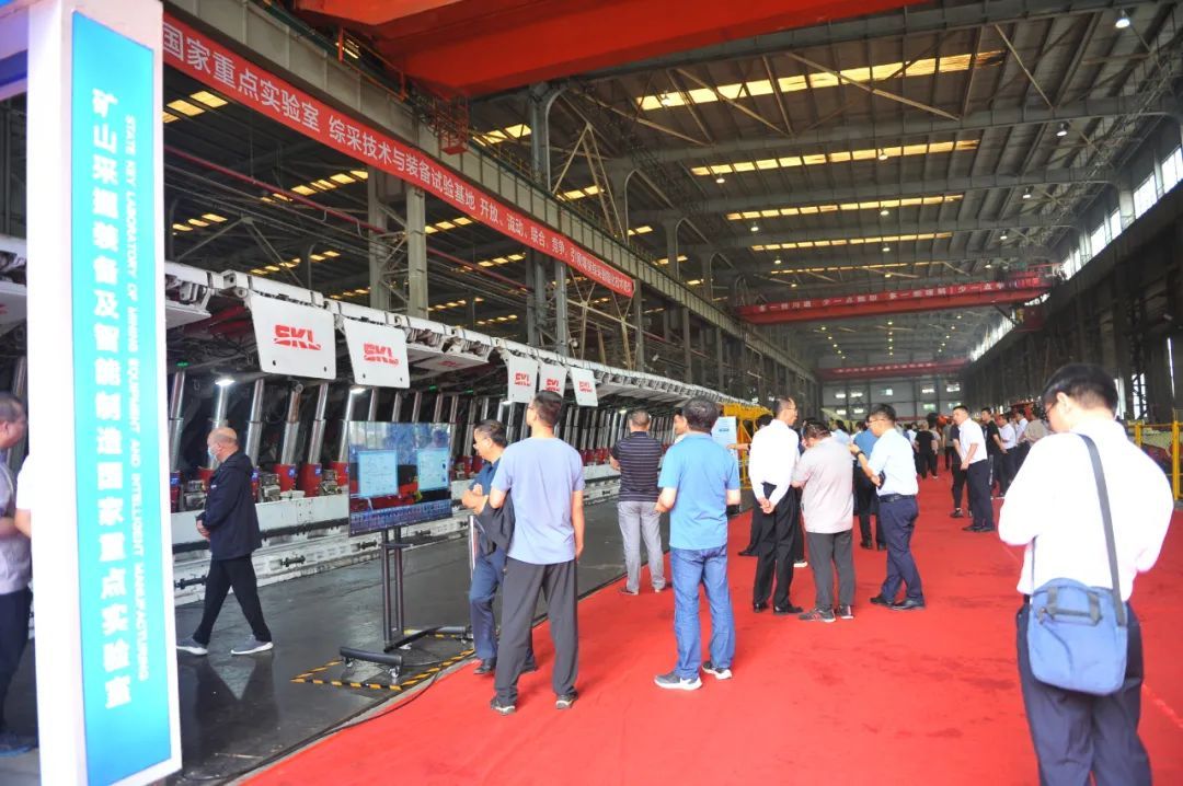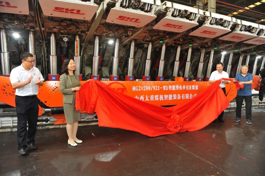 交流会结束后,与会人员在办公大楼前合影留念,并参加了在矿山采掘装备及智能制造国家重点实验室举办的采煤机下线仪式。在大家的共同见证下,中国煤炭机械工业协会副理事长王艳霞、太重集团公司副总经理吴建华、山西晋能控股集团装备事业部总经理高保同、太重煤机总经理马继磐,共同为由太重煤机自主研发的新一代高端智能型MG2×200/921-WD采煤机揭幕,MG2×200/921-WD智能型电牵引采煤机由此开启了首次运转。